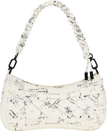 Woven construction enhances the timeless character of this slim handbag furnished with a knotted shoulder strap and an optional crossbody strap.
