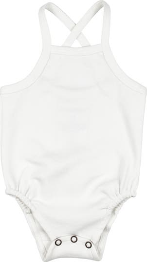 Crisscross straps add a little extra charm to this staple bodysuit cut from breathable organic cotton.