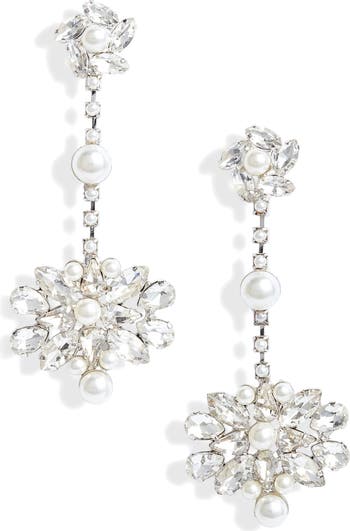 Sparkling crystals and imitation pearls make these drop earrings elegant accessories that are sure to steal the scene.