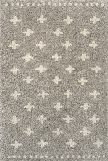 Inspired by vintage Moroccan rugs, our modern geometric rug has a soft, low shag pile. The all-over cross pattern is woven in gray on an ivory background; our -inspired design recalls traditional handwoven rugs. Add some Bohemian style to your living room, bedroom, or reading nook with this easy-care rug.