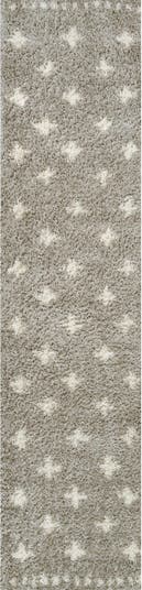 Inspired by vintage Moroccan rugs, our modern geometric rug has a soft, low shag pile. The all-over cross pattern is woven in ivory on a gray background; our -inspired design recalls traditional handwoven rugs. Add some Bohemian style to your living room, bedroom, or reading nook with this easy-care rug.