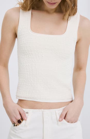 Tonal croc embossing adds chic texture to this square-neck knit tank that adds an elevated feel to any look.