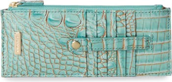 Glazed, croc-embossed leather wraps this sleek wallet that's perfectly sized to fit into smaller bags.
