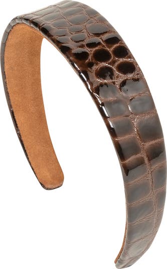 A shiny croc texture makes pulling back your tresses with this leather headband as cool as it easy.