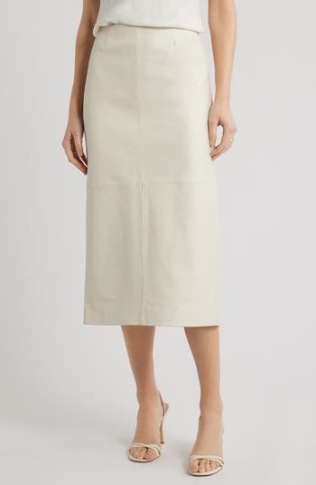 Croc embossing brings rich texture to this supple leather skirt designed with a pencil silhouette, creating a sophisticated yet minimal look.