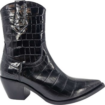 IF YOUR FOOT IS A BIT WIDER GO UP 1/2 SIZE. Step into bold sophistication with these Madison Maison Western-inspired boots, meticulously handcrafted in Italy from 100% premium leather with a croc-embossed finish