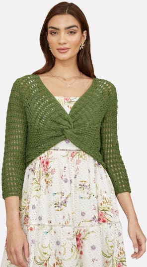 For a cute twist on a classic, we love this bolero from Yumi. The lightweight crochet knit is tied at the front, beneath a plunging V neckline. The gorgeous crochet knit is the perfect addition to your Summer wardrobe. Made from 100% cotton for added luxury.