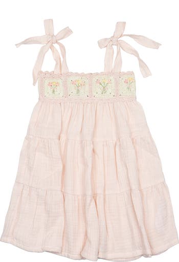 A dress that feels like a keepsake from the moment you see it. The Crochet Dress is something truly special. Hand-crocheted chest panel adorned with three delicate bouquets, each one hand-embroidered by Peruvian artisans. Every piece takes days to complete, making each dress one-of-a-kind. Adjustable shoulder tie straps grow with your child, while the soft skirt flows with every movement. Crafted in a dreamy pastel color with breathable 100% cotton gauze—perfect for spring celebrations, special moments, and everyday magic alike. Made slowly in Peru with intention. The kind of piece you reach for again and again. The one you pass down.