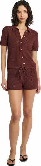 - This crocheted button-down has an airy, openwork construction, done in soft cotton-nylon yarns. It’s tailored for an oversized fit, with short sleeves and solid trims.