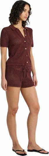 - This crocheted short has a mid-rise silhouette, designed in a breathable cotton-nylon blend. It’s topped by a knit waistband, embedded with drawstrings, and falls to a micro-length hem.