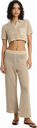 - This Crochet Knit Wide Leg Pant is light and airy thanks to its openwork cotton texture. It’s topped by a ribbed waistband and falls to a full-length inseam.