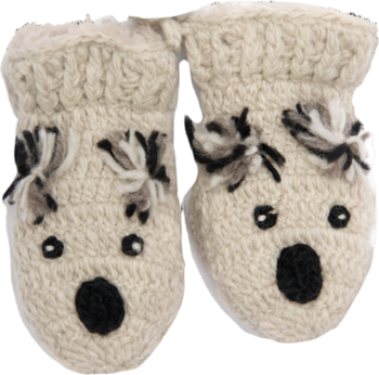The Crochet Koala Mittens are crocheted by hand with 100% wool and have a soft Polyester lining. These animal puppet mittens come in 2 sizes, so it's suitable from ages 1-10 years old. The Crochet Koala Mittens are perfect for multiple age groups, whether it be babies, toddlers, and kids. The Crochet Koala Mittens are hand-made in Nepal from High-quality Wool. Size guide: Small - 1-3yrs (they come with a string) Medium - 4-10 yrs (no string) The Crochet Koala Mittens are crocheted by hand with 100% wool and have a soft Polyester lining. These animal puppet mittens come in 2 sizes, suitable for ages 1-10. The Crochet Koala Mittens are perfect for multiple age groups, whether babies, toddlers, or kids.Our Crochet Koala Mittens are hand-made in Nepal from High-quality Wool. Size guide: Small - 1-3yrs (they come with a string)Medium - 4-10 yrs (no string)