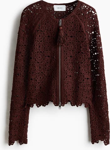 H&M Crochet-look Cardigan, Main, color, Dark Brown