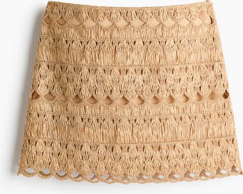 Mini skirt in a crochet-look knit with a concealed zip and hook-and-eye fastening at one side and a scalloped hem. Jersey lining.