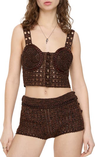 Shorts hand-crocheted in Italy from mouliné cotton, debuted on the Burberry Summer 2026 runway. The hotpant silhouette is detailed with a tortoiseshell chain-link trim and cut for a slim fit. Style with the coordinating top.