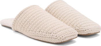 Soft fleece lining adds plenty of cozy comfort to this crocheted slipper in a mule-inspired silhouette.