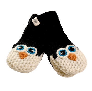 The Crochet Penguin Mittens are crocheted by hand with 100% wool and have a soft Polyester lining. These animal puppet mittens come in 2 sizes, so it's suitable from ages 1-10 years old. The Crochet Penguin Mittens are perfect for multiple age groups, whether it be babies, toddlers, and kids. The Crochet Penguin Mittens are hand-made in Nepal from High-quality Wool. Size guide: Small - 1-3yrs (they come with a string) Medium - 4-10 yrs (no string) The Crochet Penguin Mittens are crocheted by hand with 100% wool and have a soft Polyester lining. These animal puppet mittens come in 2 sizes, suitable for ages 1-10. The Crochet Penguin Mittens are perfect for multiple age groups, whether babies, toddlers, or kids. Our Crochet Penguin Mittens are hand-made in Nepal from High-quality Wool. Size guide: Small - 1-3yrs (they come with a string)Medium - 4-10 yrs (no string)