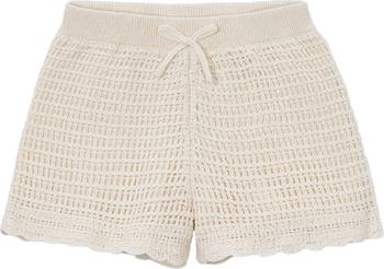 A breezy and stylish piece crafted with a handmade touch, these shorts combine comfort with bohemian flair. Their textured weave and decorative finish make them perfect for warm-weather looks. Ribbed waistband with drawstring tie for adjustable fit. Open-weave crochet design with scalloped hem for added charm.