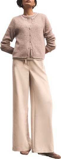 These mid-rise wide-leg trousers offer a relaxed yet polished silhouette, perfect for everyday wear. Designed with an elasticated drawstring waistband, they provide a comfortable, adjustable fit. Crochet side stripe detailing adds subtle texture and visual interest, while the wide-leg cut creates effortless movement. Finished with practical side and rear pockets, they combine ease and functionality with a refined, laid-back feel.