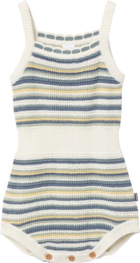 Our elegant baby girl sunsuit is fashioned from soft 100% cotton crochet sweater knit for a breathable feel perfect for sunny days. Ribbed leg holes, neckline, and shoulder straps provide comfort for all your little one's adventures, while faux wood buttons make dressing and diaper changes easy. The cinched, stretchy waistline ensures a secure fit and allows her to move with ease and confidence. Comfortable and fashionable, our sunsuit will be a favorite all season long. Our essentials have been independently certified with STANDARD 100 by OEKO-TEX® so that you don’t have to worry about harmful substances in your baby’s wardrobe. Pack includes one sunsuit.