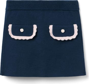Stitched with style, our soft sweater skirt features crochet lace trim and button details. Take it for a spin.
