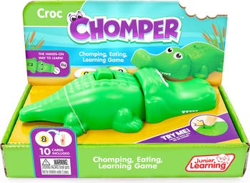 CROCODILE CHOMPER - Practice addition, subtraction, phonics & sight words. Get ready for a learning adventure that’s full of bites and bright ideas! Crocodile Chomper is a playful, interactive crocodile toy that gobbles up learning counters to help teach math facts and reading skills. Just place tiles or tokens in front of your chomping croc, then read the word or solve the sum chomp! And the learning clicks into place! HANDS-ON ACTIVE LEARNING: Encourage movement and participation as kids interact directly with counters and tiles, making learning more memorable while developing problem-solving skills, confidence and focus through tactile play. HOW IT WORKS: 1. Place learning counters or tiles in front of your Crocodile Chomper. 2. Solve the equation or read the word. 3. Feed it to your croc and watch learning come alive! Make learning irresistible with Crocodile Chompers the toy that turns skill-building into a snackable game! FUN FOR HOME OR CLASSROOM: Perfect for individual or group activities, creates exciting learning moments in classrooms, homeschool environments or at home, helping teachers and parents keep kids motivated. EXPAND YOUR LEARNING: Build early math and literacy skills. Fully compatible with Junior Learning Snacks (sold separately) for even more chomping challenges!