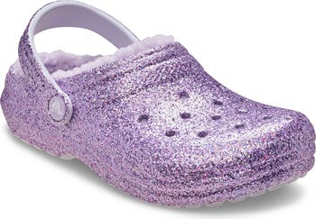 Ultra-plush fleece lining keeps little toes toasty warm when they slip on these glittery clogs made from durable Croslite®.