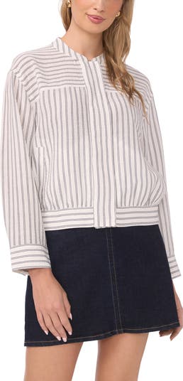 Smart detailing from the blade collar and pinstripe pattern to the abbreviated length make this modern bomber jacket the one you'll want for both office and off-duty looks.