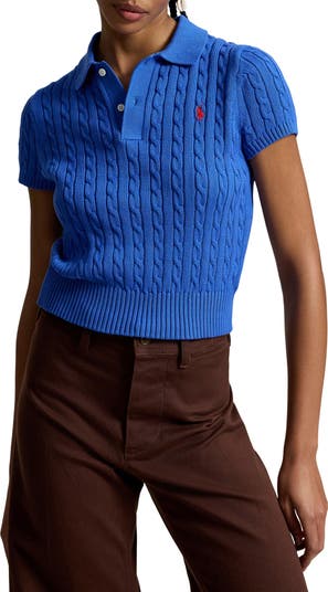 Combed cotton offers season-spanning comfort in this cropped cable-knit sweater embroidered with Ralph Lauren's preppy polo rider—an instant icon since its '71 debut.