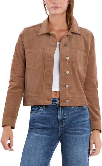 Soft corduroy brings warmth and texture to this season-perfect jacket updated in a modern cropped fit.