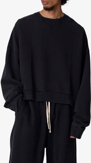 Dropped shoulders enhance the loose fit of this all-cotton crewneck sweatshirt cut at a slightly cropped length.