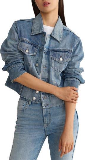 Every closet craves this nonstretch jean jacket updated in a faded wash and a boxy, cropped fit.