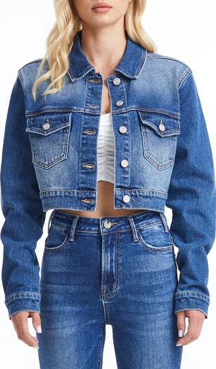 Vintage meets modern in this nonstretch-denim trucker jacket that's cropped for a modern silhouette and faded for a lived-in look.