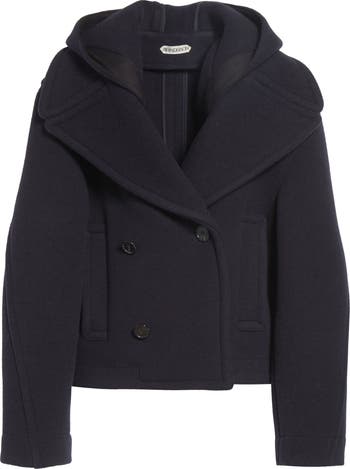 Crop Double Face Wool Peacoat with Removable Hood