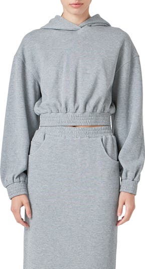 Dropped shoulders keep your off-duty look casual in a slouchy crop hoodie with smocking at the cuffs and hem.