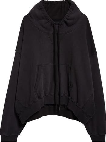 A baggy, extended neckline amps up the slouchy ease of this cotton-blend hoodie cut with a cropped, curved hem.