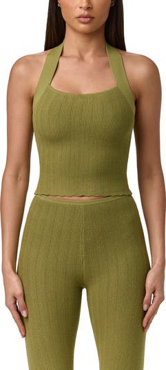 A close-fitting knit top is cut in a cropped silhouette and meant to show off your shoulders and back.