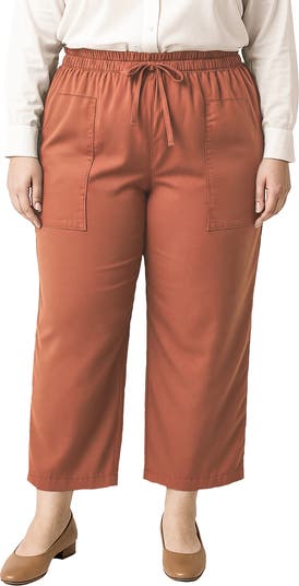 A new staple for your casual wardrobe, these pull-on pants feature a high waist, large, prominent front pockets and a footwear-featuring cropped, straight cut.