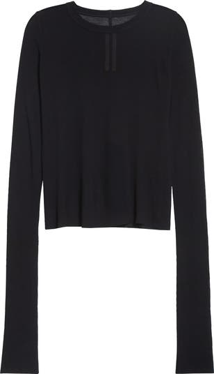 Cut from semisheer, silk-kissed jersey, this raw-edged T-shirt contours to your curves in flexible ribbing. A signature seam detail runs down the spine—an inconspicuous whisper to fellow Owens fans.