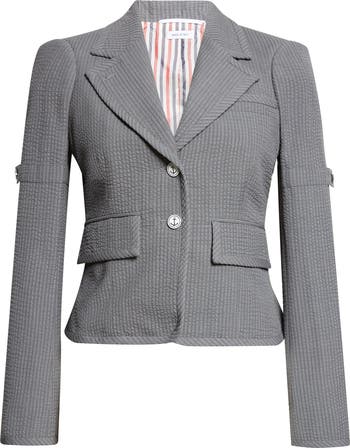 Crop Sculpted Shoulder Wool Seersucker Jacket