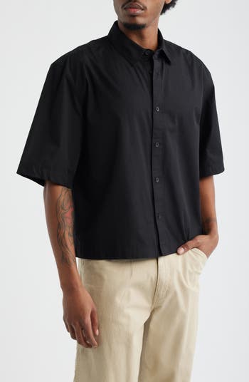 A cropped hem emphasizes the boxy, relaxed fit of a shirt cut from cool cotton poplin and topped with a pointed collar to keep you looking smart even when you don't have to. Wear it on its own or layered and unbuttoned depending on the day, the occasion or your mood.