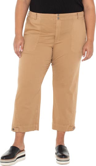 An elevated take on utility pants, this stretchy, linen-blend pair features a flat-front waist, cargo pockets and snap-tab details to adjust the cropped hems.