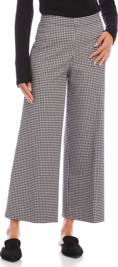 A grid pattern details these cropped, wide-leg pants topped with a comfortable elastic waist.