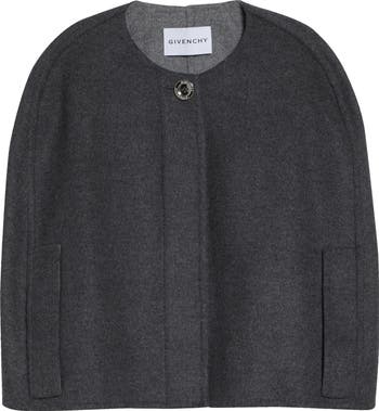 Cozy up in this soft-to-the-touch wool-and-cashmere cape sculpted with rounded shoulders and a clean hidden-button placket. The versatile, streamlined design works with both casual and formal looks alike.