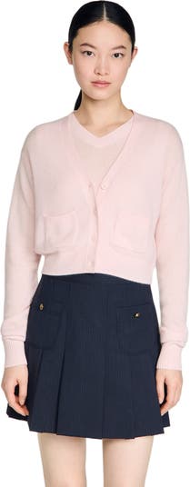 SANDRO Cropped cashmere wool cardigan, Main, color, Light Pink