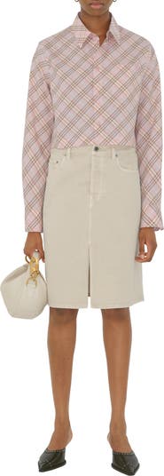 A long-sleeved shirt in Italian-woven cotton, patterned with the Burberry Check. The cropped style is cut to a regular fit and embroidered with a tonal B shield, a motif inspired by our Equestrian Knight Design. ||Button closure |Point collar |Chest patch pocket |Single-button cuffs |Straight hem |Embroidered B shield at pocket