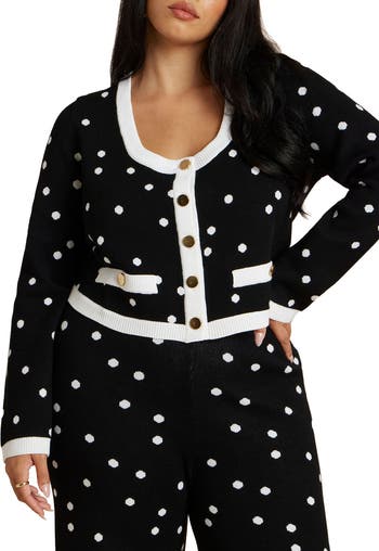 - Heritage intarsia knit gets a tailored upgrade in this cropped polka-dot jacket. Buttoned and close-fit with soft stretch, it layers like a cardigan but delivers jacket-level polish.