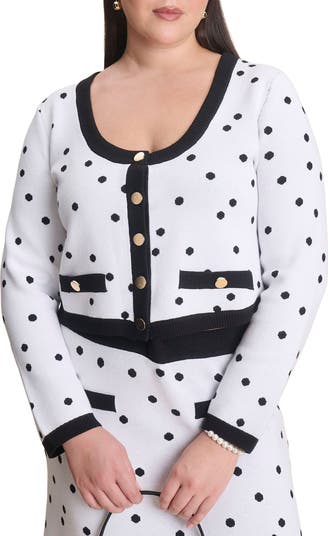 - Heritage intarsia knit gets a tailored upgrade in this cropped polka-dot jacket. Buttoned and close-fit with soft stretch, it layers like a cardigan but delivers jacket-level polish.
