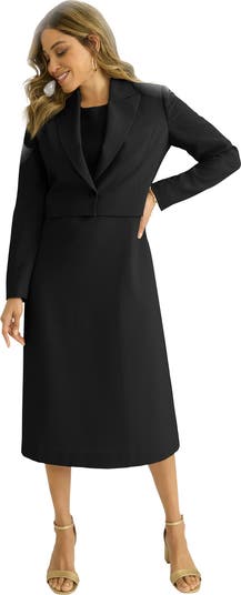Our cropped jacket dress strikes just the right balance of sophistication and comfort. The simple yet stunning single-breasted cropped jacket is the perfect complement to the fit and flare dress. This pair means business.