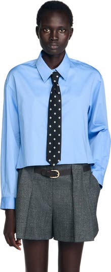 SANDRO Cropped shirt with detachable tie, Alternate, color, Blue